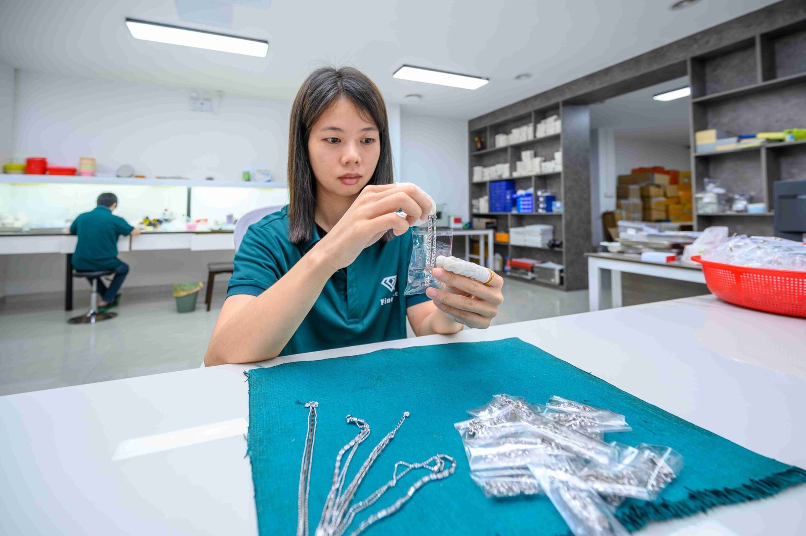 Application of protective plating to silver jewelry to prevent tarnishing and extend product lifespan.